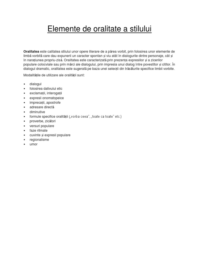 Elemente De Oralitate A Stilului
