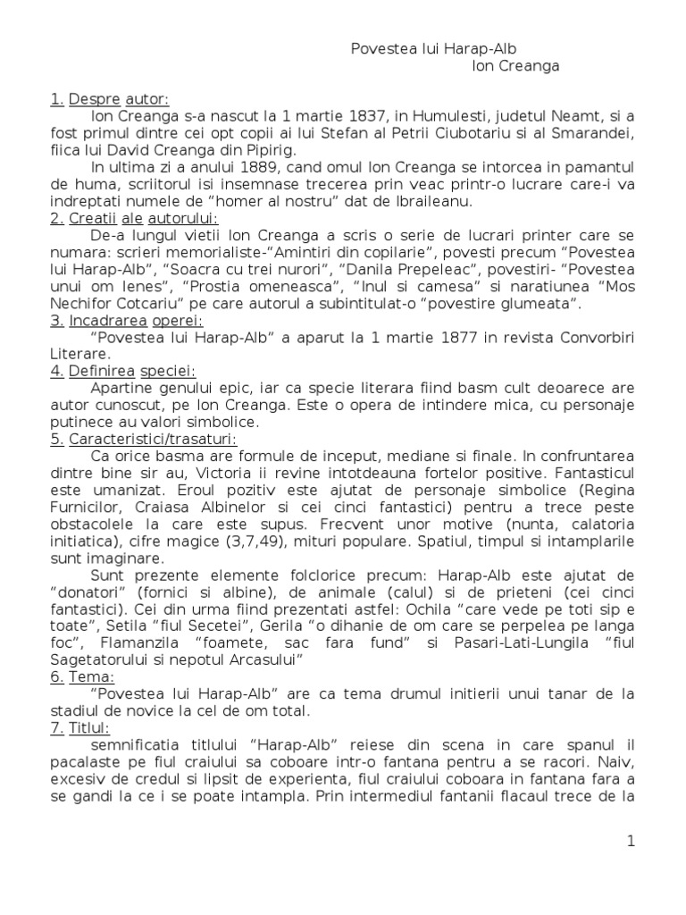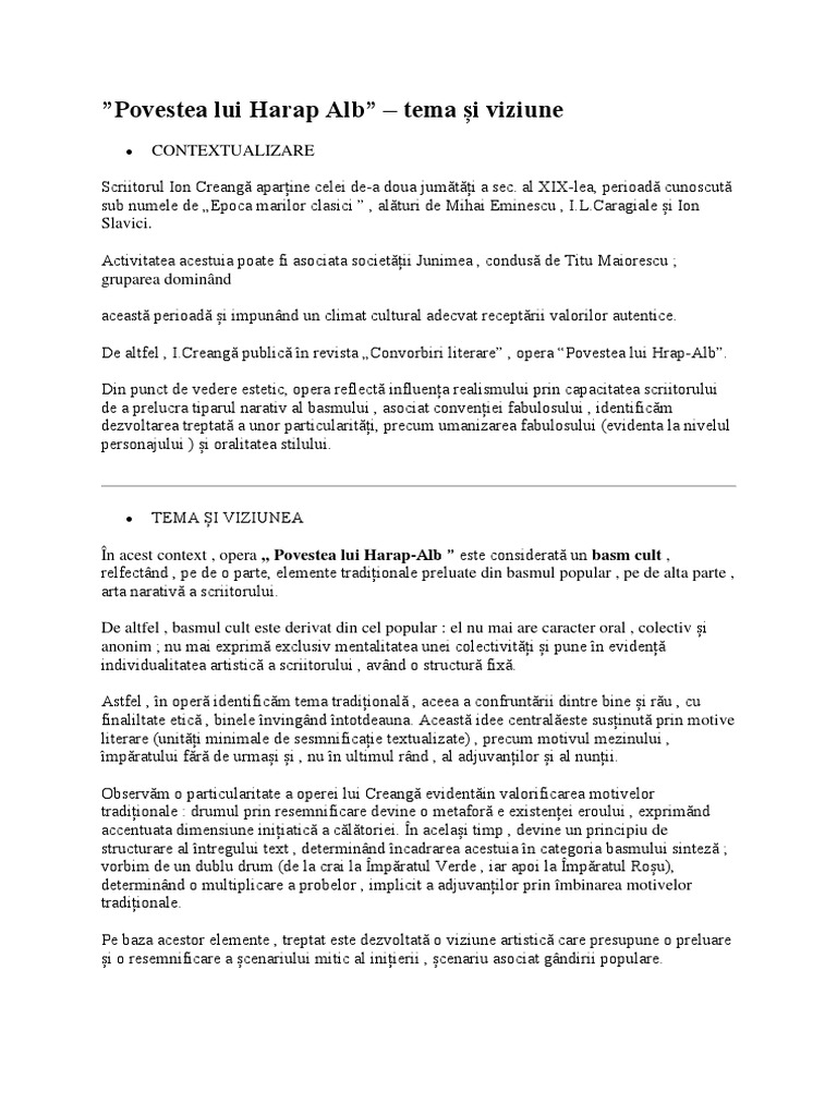 Doc Povestea Lui Harap Alb Delia Georgiana Academia Edu