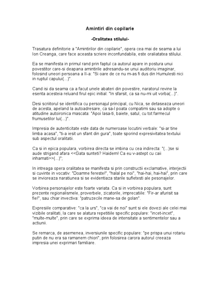 Oralitate Si Umor In Amintiri Din Copil