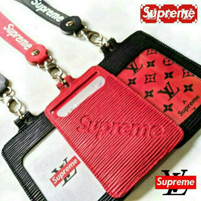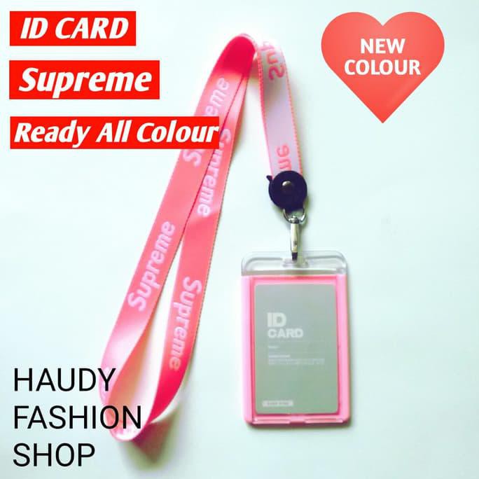 Name Tag Kulit Pu Id Card Holder Supreme Gantungan Nama Biru Shopee Indonesia