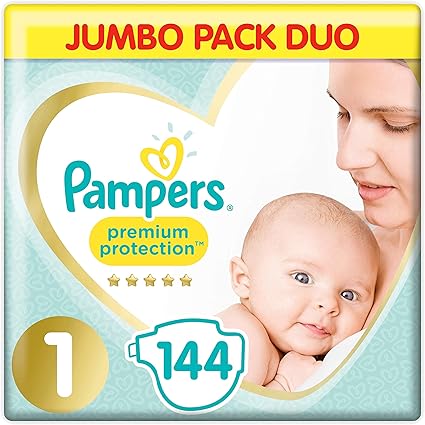 Amazon Com Pampers Premium Protection Softest Comfort Nappies Jumbo Pack Approved By British Skin Foundation Size 1 Pack Of 2 72 X 2 Health Personal Care