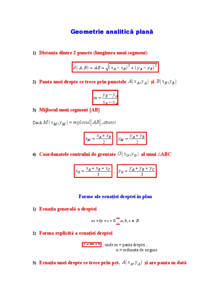 Teoriebac Clasa A10a 5 Geometrie Analitica Formula Distantei Mijlocul Unui Punct Ecuatia Unei Drepte Panta Unei Drepte Vectori In Sistem De Coordonate Jitaruionelblog Pregatire Bac Si Evaluarea Nationala 2020 La Matematica Si