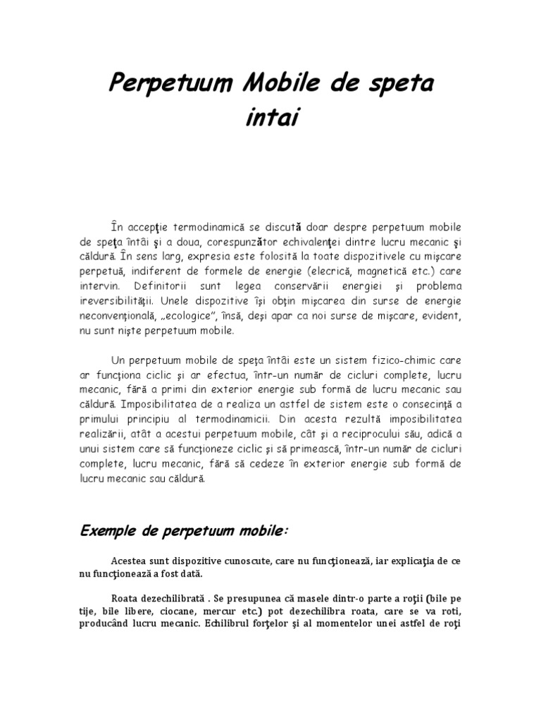 Tipuri De Perpetuum Mobile Referat